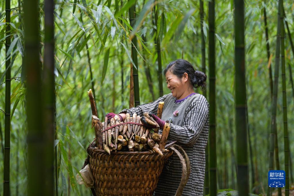 2022年10月27日,在貴州省赤水市寶源鄉聯(lián)華村,農民收獲竹筍。新華社記者 楊文斌 攝