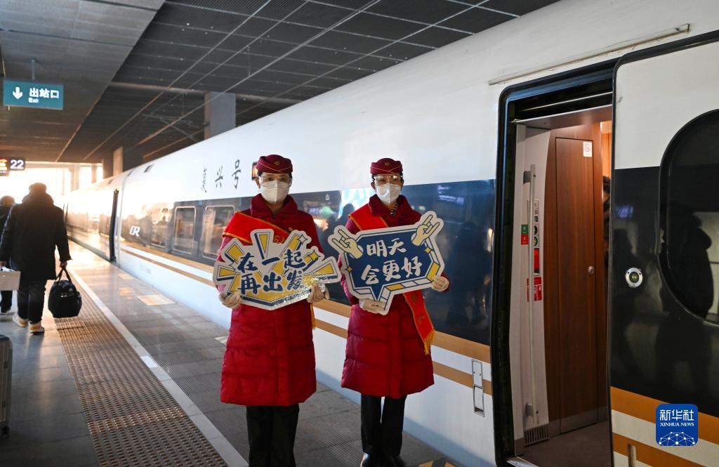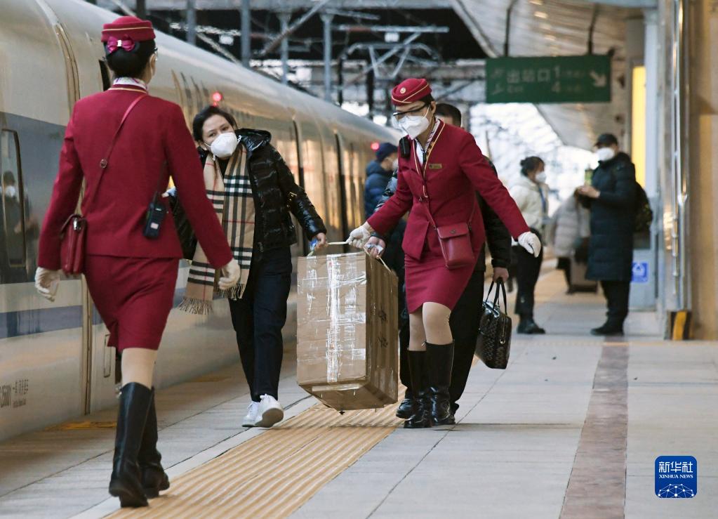 祖國西北角,烏魯木齊站裝點(diǎn)一新,喜慶的窗花、大紅的燈籠和中國結為踏上旅程的人們帶來(lái)暖意;西南山區,復興號“綠巨人”在新成昆鐵路上飛馳,彝族列車(chē)長(cháng)阿衣布卡帶來(lái)“庫史木撒”(新年好)的問(wèn)候,讓車(chē)廂內歡聲笑語(yǔ);華南暖冬里,高鐵樞紐大站廣州南站,人潮涌動(dòng)的火熱場(chǎng)面再次重現,旅客手上拎著(zhù)大包小包,洋溢著(zhù)回家的喜悅……