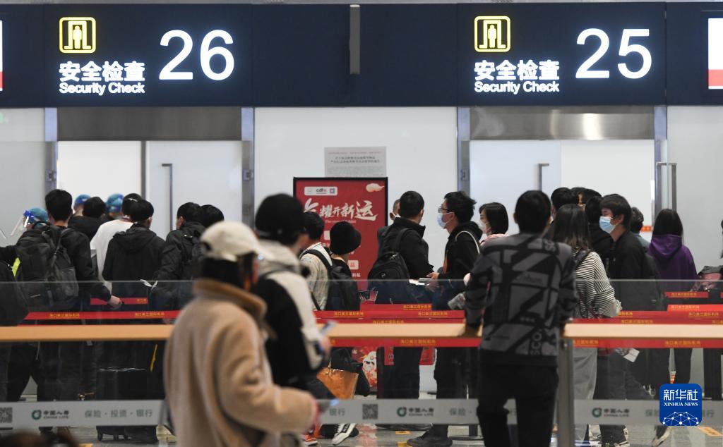 1月7日,在??诿捞m國際機場(chǎng),旅客排隊等待安全檢查。新華社記者 楊冠宇 攝