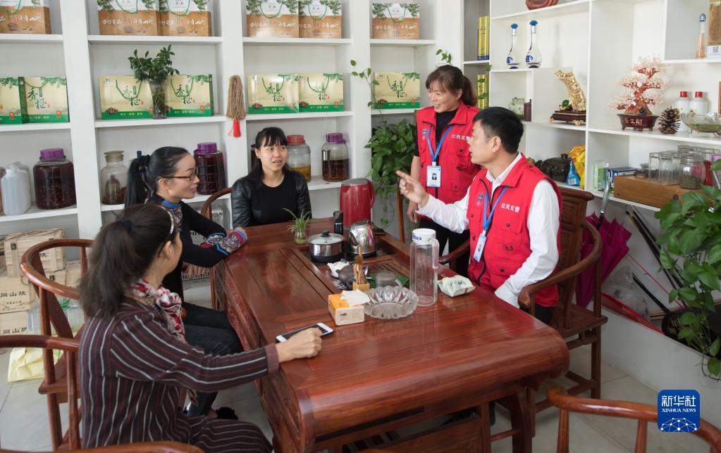 浙江省諸暨市紅楓義警工作人員(右一、右二)在楓橋鎮調解群眾糾紛(2018年10月19日攝)。新華社記者 翁忻旸 攝