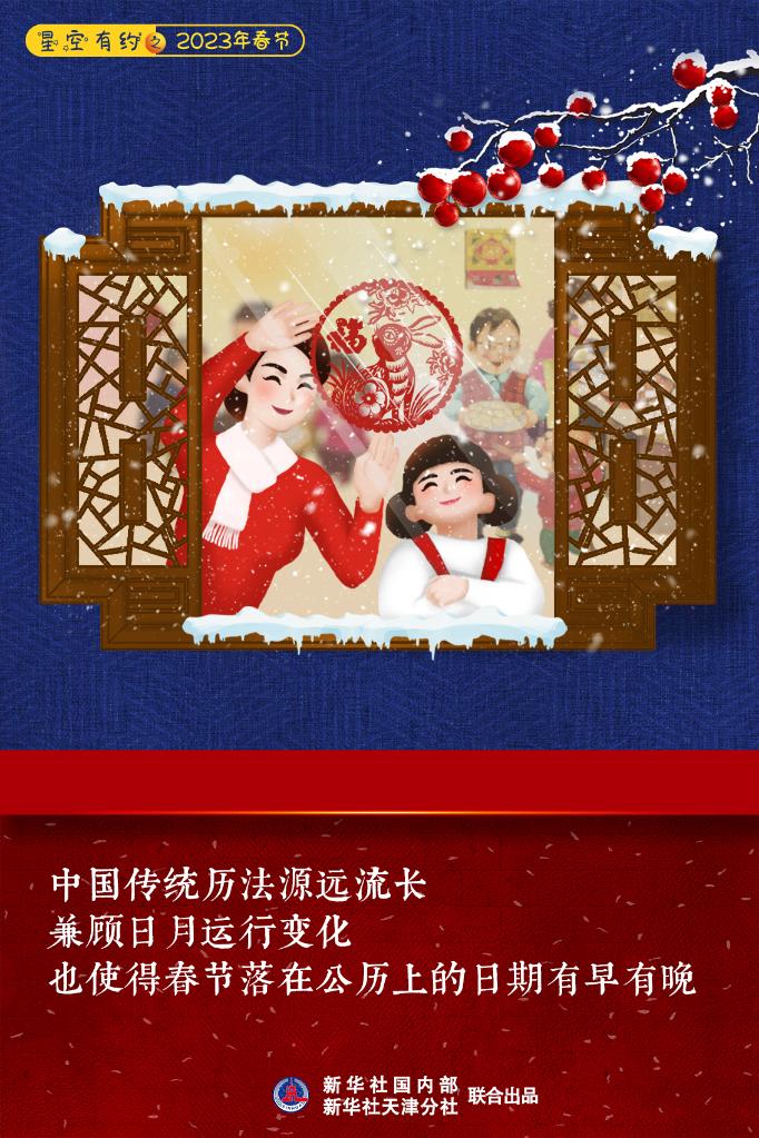 “中國傳統歷法源遠流長(cháng),兼顧日月運行變化,包含了更多的自然信息,功能更加豐富,也使得春節落在公歷上的日期有早有晚,這也豐富了春節的文化內涵,讓春節變得多姿多彩?!睏铈赫f(shuō)。