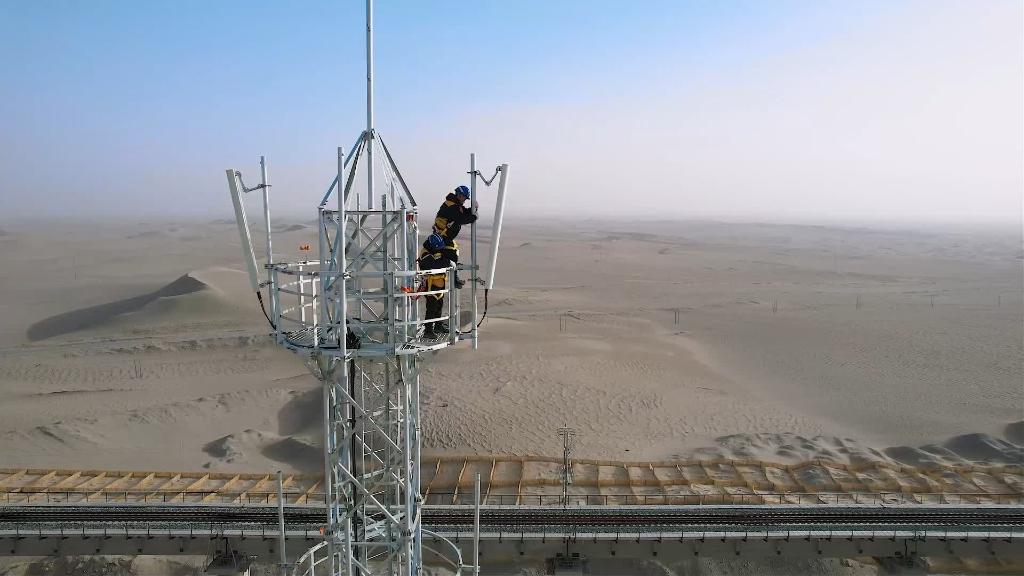 蜿蜒曲折穿越天山南北的鐵路軌道有9000多公里,沿線(xiàn)分布著(zhù)1344座通信鐵塔。春運前,新疆鐵路通信鐵塔檢修隊8個(gè)小伙子來(lái)到塔克拉瑪干沙漠南緣,在開(kāi)通僅半年的和若鐵路旁,對沿線(xiàn)120座通信鐵塔進(jìn)行檢修。