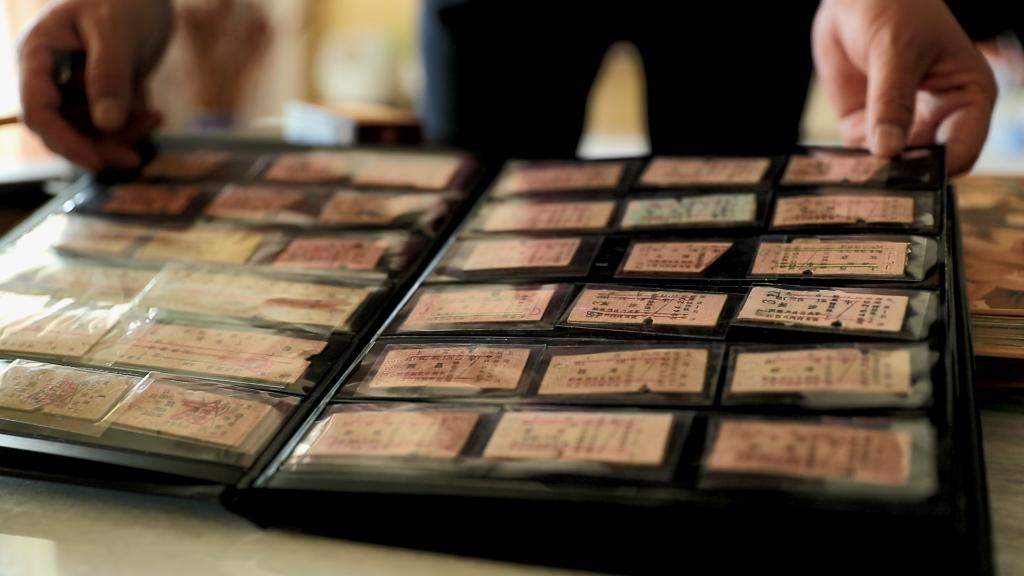孫昆育收集整理硬板票。新華社記者丁怡全 攝