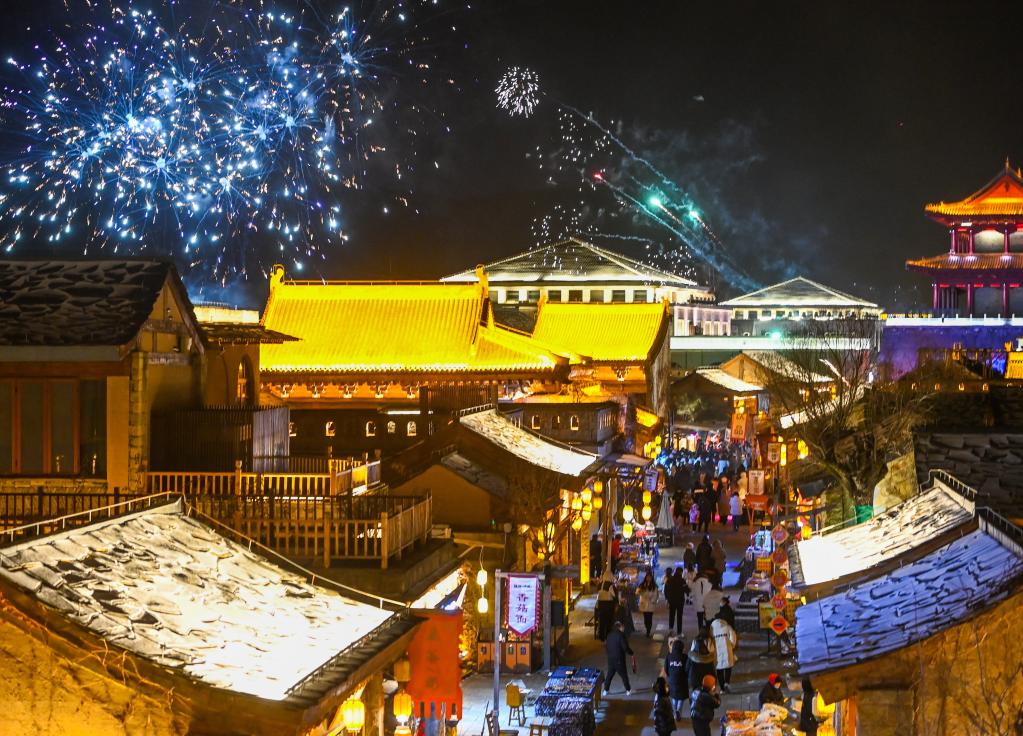 游客在金延安文化旅游產(chǎn)業(yè)園內游覽(1月14日攝)。新華社發(fā)(鄒競一攝)