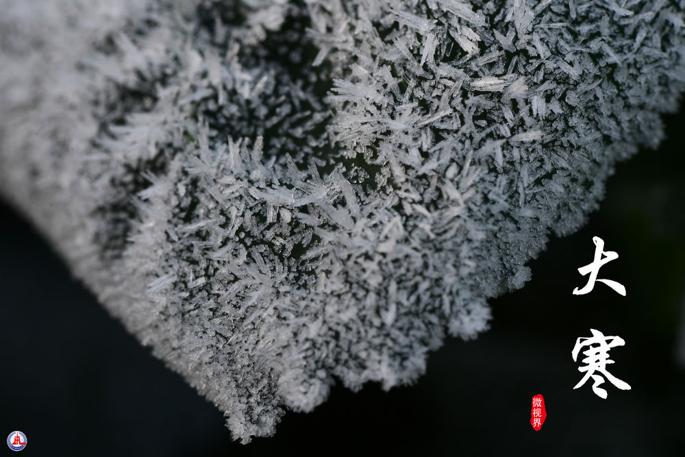 ↑云南省曲靖市羅平縣金雞村,一片樹(shù)葉上鋪滿(mǎn)霜花。新華社發(fā)(毛虹 攝)