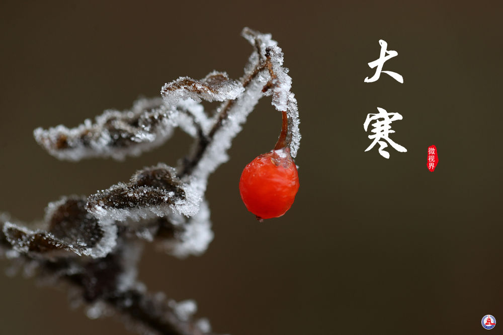 ↑江蘇省連云港市,野生小紅果上掛著(zhù)冰。新華社發(fā)(王春 攝)