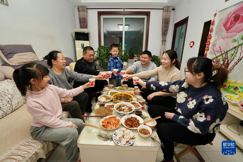 1月21日,河北邢臺經(jīng)濟開(kāi)發(fā)區春蕾花園居民張康(右三)一家在吃年夜飯。新華社記者 牟宇 攝