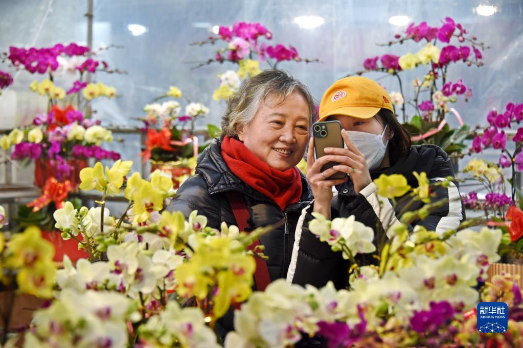 市民在山東青島南山花卉市場(chǎng)拍攝蝴蝶蘭(1月20日攝)。新華社記者 李紫恒 攝
