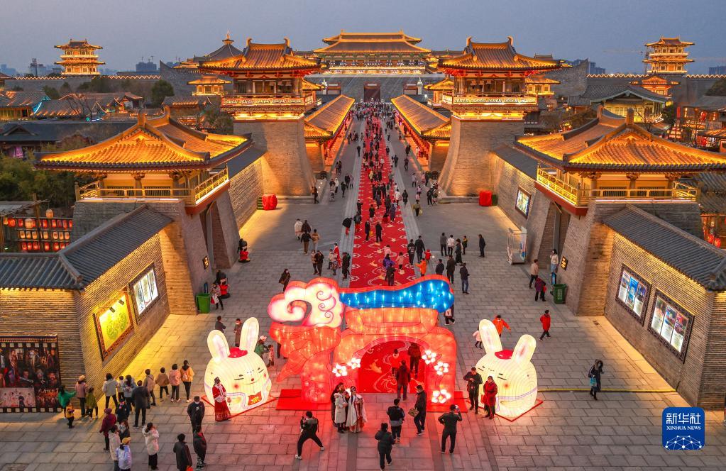 游客在湖北襄陽(yáng)市唐城春節廟會(huì )賞燈、游覽(1月18日攝)。新華社發(fā)(楊東 攝)