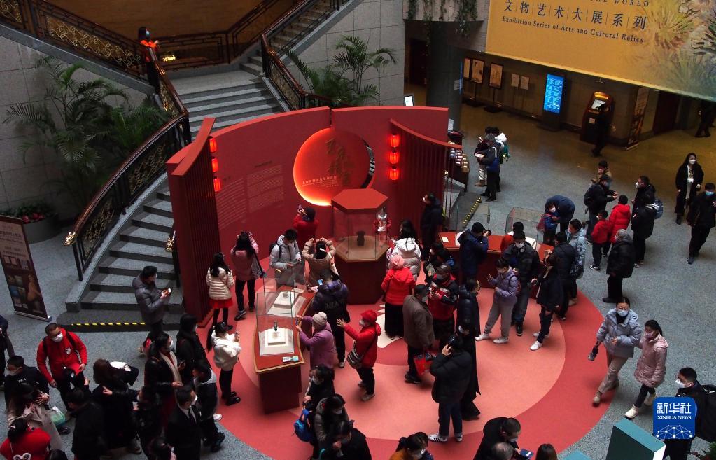 1月22日,觀(guān)眾在上海博物館大堂里觀(guān)看兔年迎春展。新華社記者 任瓏 攝