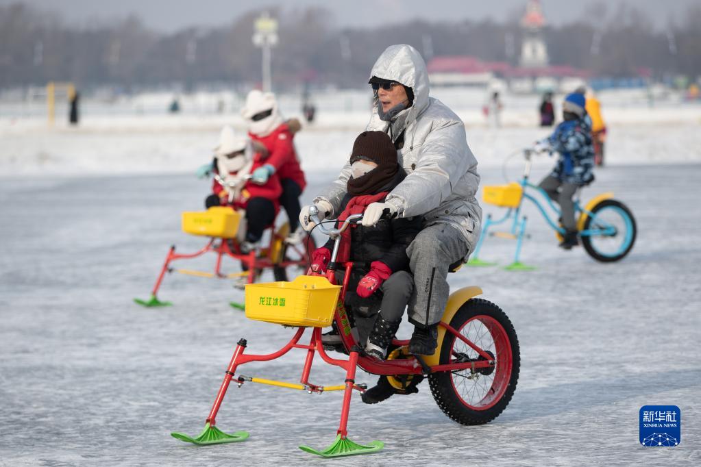 1月22日,游客在黑龍江省哈爾濱松花江冰雪嘉年華園區游玩。新華社記者 張濤 攝