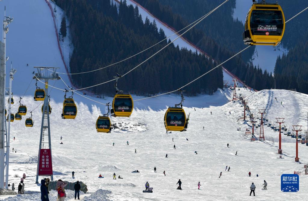 天空湛藍清澈,大地銀裝素裹……在新疆阿勒泰地區的雪道上,游客王先生和家人在冰雪世界中盡情馳騁。