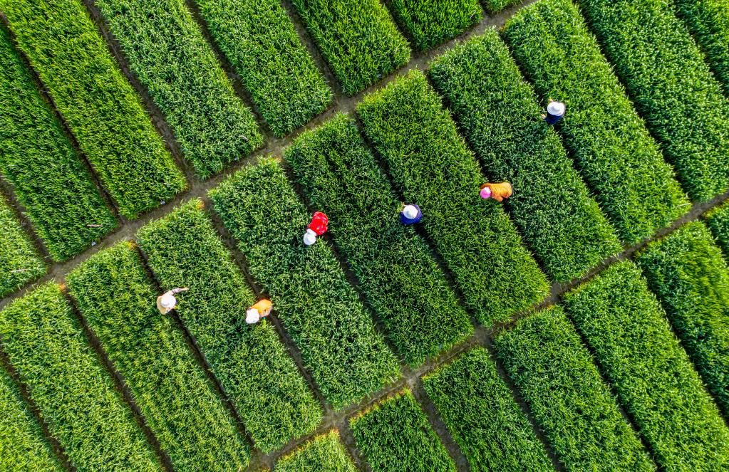 2022年3月30日,在安徽省合肥市廬江縣白湖鎮省級現代農業(yè)示范區育種基地,農民在小麥育種田清除雜草。新華社發(fā)(左學(xué)長(cháng) 攝)