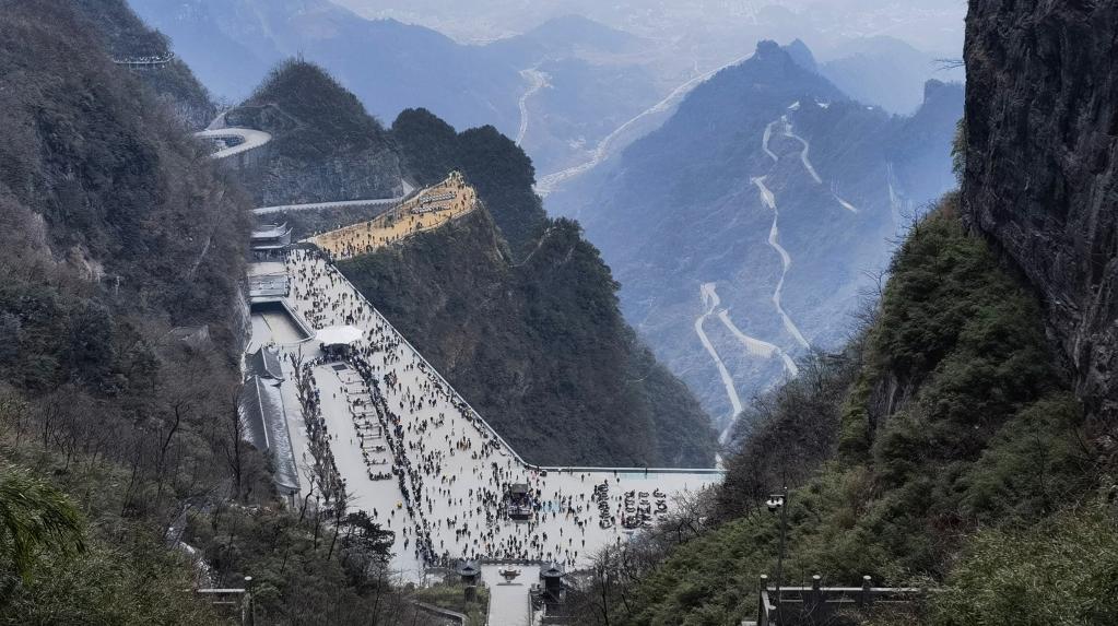 春節期間,各地推出相應措施,保障文旅市場(chǎng)安全、有序。圖為在張家界天門(mén)山景區排隊的游客。新華社記者趙眾志 攝
