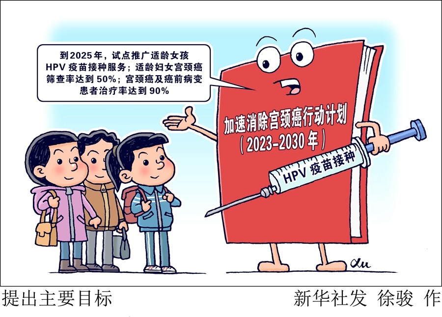 “到2025年,試點(diǎn)推廣適齡女孩HPV疫苗接種服務(wù);適齡婦女宮頸癌篩查率達到50%;宮頸癌及癌前病變患者治療率達到90%?!比涨?,國家衛生健康委員會(huì )等十部門(mén)聯(lián)合印發(fā)《加速消除宮頸癌行動(dòng)計劃(2023-2030年)》,提出加速消除宮頸癌的主要目標。