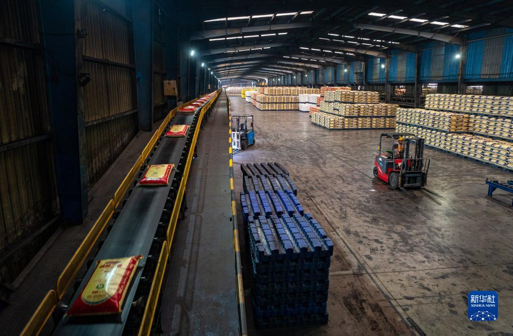 工人在位于云南省昆明安寧市的云天化集團天安化工磷肥制造中心生產(chǎn)線(xiàn)上進(jìn)行運輸作業(yè)(2月8日攝)。新華社記者 江文耀 攝