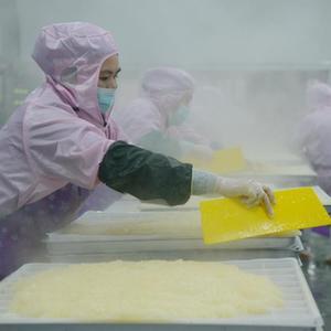 憑借沖泡即食的便捷性,凍干銀耳羹贏(yíng)得了很多年輕人的青睞?!敖衲昵皝?lái)洽談的客戶(hù)明顯多了不少,開(kāi)年訂單量較去年同期增長(cháng)了近30%,可以預見(jiàn),目前的6條凍干銀耳羹生產(chǎn)線(xiàn)很快就要飽和運行?!睂幍玛赊r農業(yè)開(kāi)發(fā)有限公司董事長(cháng)鄭開(kāi)亮介紹說(shuō),相較于直接銷(xiāo)售干品銀耳,經(jīng)過(guò)精深加工生產(chǎn)凍干銀耳羹不僅提升利潤約30%,還帶動(dòng)超120名工人穩定就業(yè)。