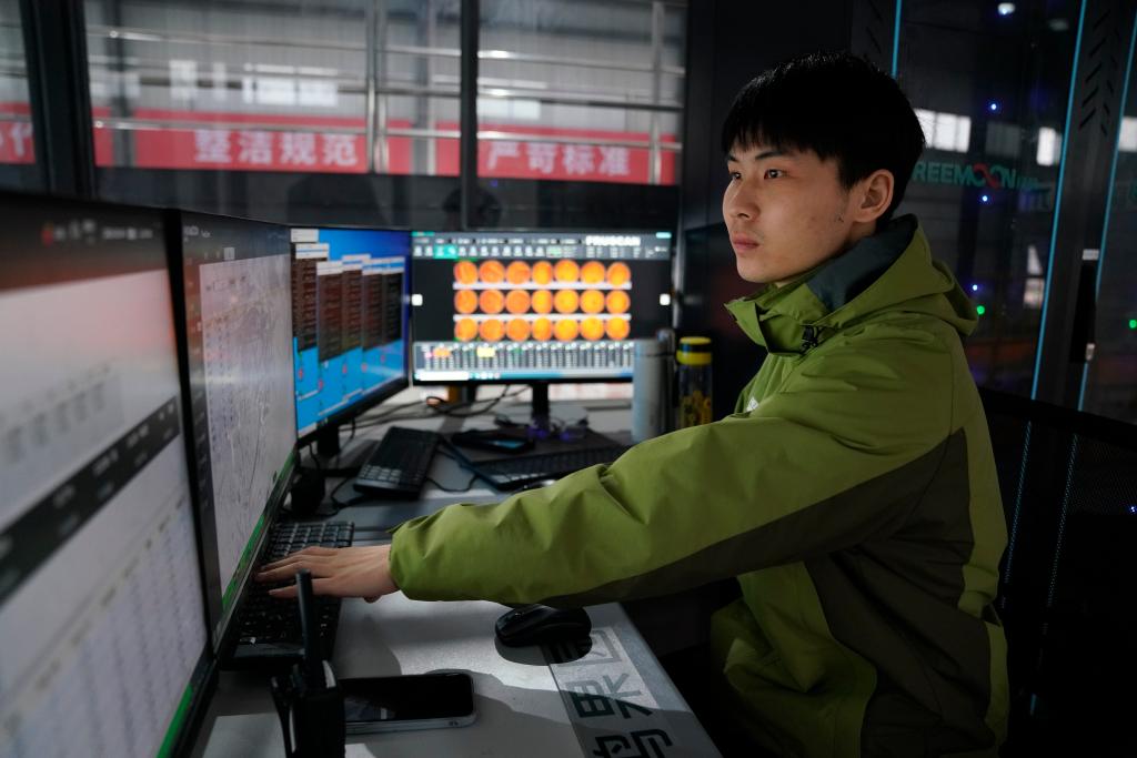 在廣西鳴鳴果業(yè)有限公司采后分選中心,工作人員在操作沃柑光電智能分選設備。新華社記者楊馳 攝