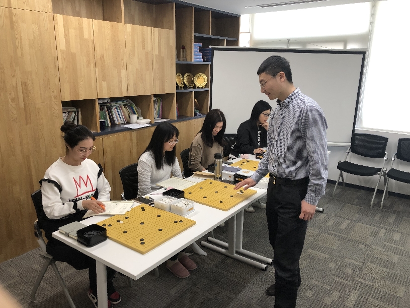 王煜輝(右)給員工進(jìn)行圍棋培訓。