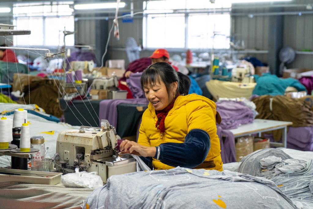 工人在安徽功茗坊農業(yè)科技有限公司紡織車(chē)間內工作。 新華社記者趙金正 攝