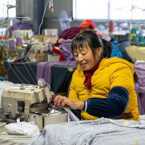 在安徽省安慶市岳西縣古坊鄉,日光燈把安徽功茗坊農業(yè)科技有限公司的紡織車(chē)間照得透亮。工人們腳踏縫紉機,針腳在五顏六色的布品上跳躍著(zhù),不一會(huì )兒,一件沙發(fā)套就做成了。