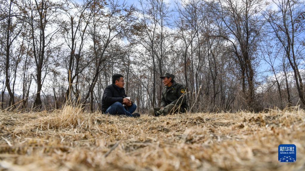 在西藏山南市隆子縣,扎西江村(左)與護林員在林中席地而坐,交流當地生態(tài)環(huán)境問(wèn)題(2月14日攝)。新華社記者 晉美多吉 攝