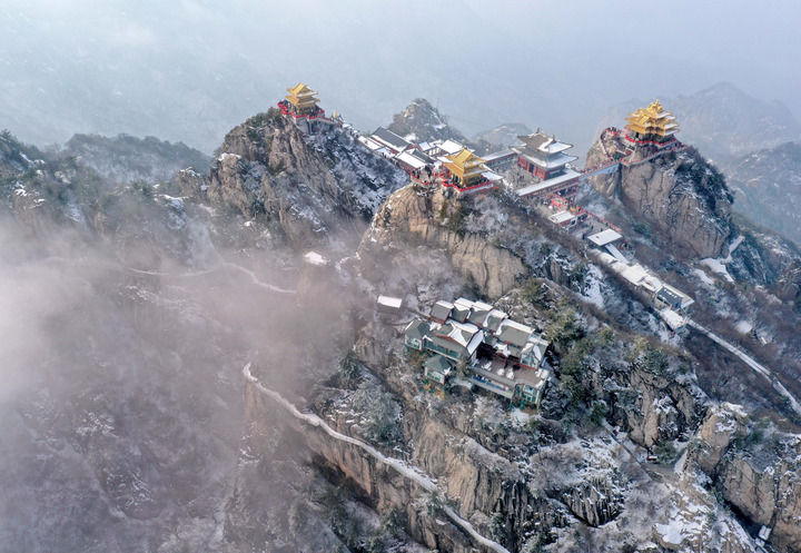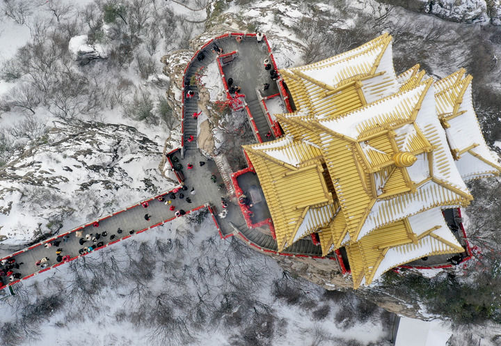 游客在洛陽(yáng)市欒川縣老君山風(fēng)景區游玩(2月23日攝,無(wú)人機照片)。新華社記者 李安 攝