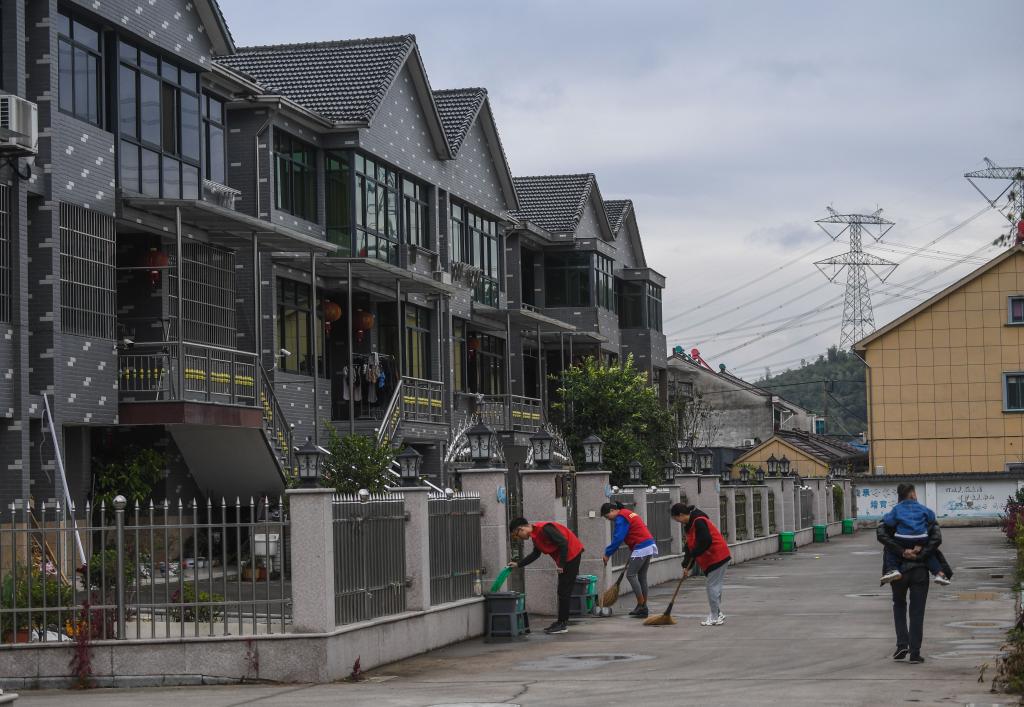 2020年11月26日,志愿者在浙江省湖州市吳興區東林鎮南山村的農民新居巡查垃圾分類(lèi)情況。新華社記者 徐昱 攝