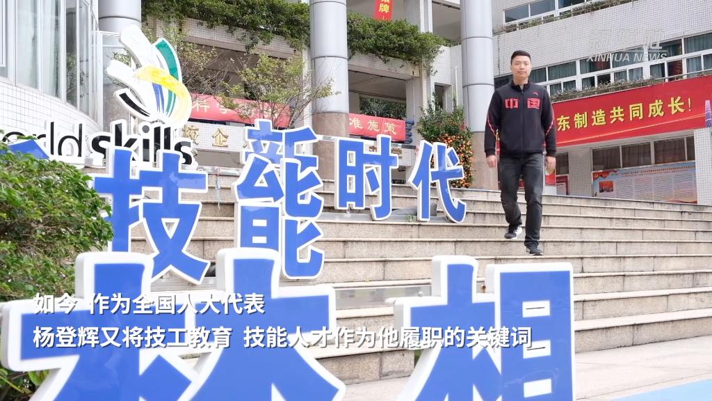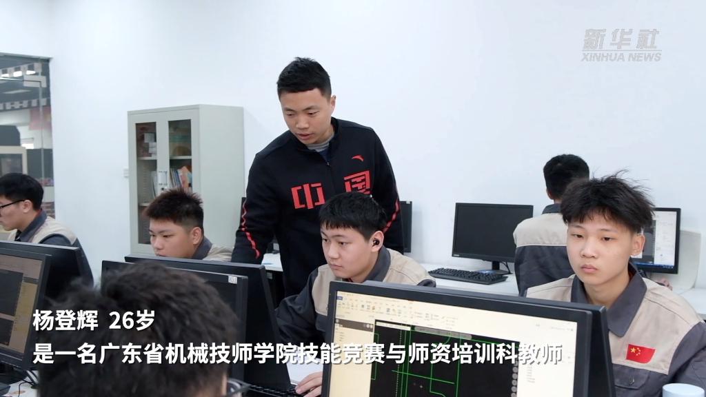 楊登輝,26歲,是一名廣東省機械技師學(xué)院技能競賽與師資培訓科教師。他也是今年廣東省選出的第十四屆全國人大代表。在出發(fā)去北京之前,他抓緊時(shí)間為學(xué)生們輔導。
