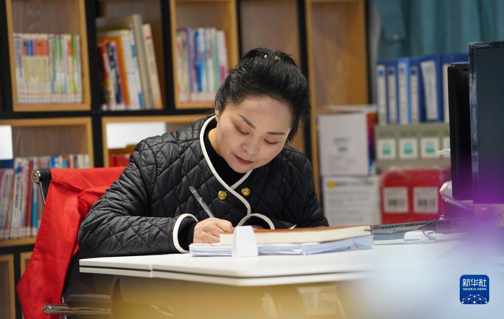陳貴靜在四川省彭州市白鹿頂村村委會(huì )辦公室寫(xiě)材料(2月16日攝)。新華社記者 薛晨 攝