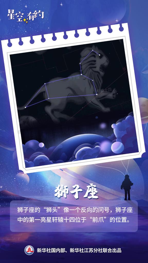 王科超說(shuō),獅子座的“獅頭”像一個(gè)反向的問(wèn)號,“春季大三角”中的五帝座一處于獅子座的“獅尾”,而獅子座中的第一亮星軒轅十四則位于“前爪”的位置。獅子座的觀(guān)測可以從3月持續至8月,感興趣的公眾可以一觀(guān)。