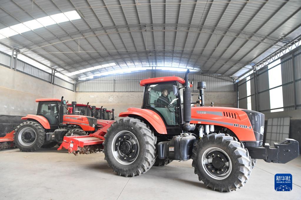 在陜西省寶雞市陳倉區慕儀鎮齊西村,齊昆在駕駛農用拖拉機(2023年2月27日攝)。新華社記者 張博文 攝