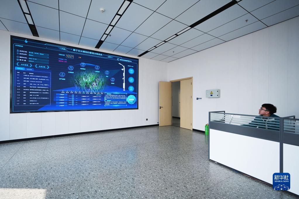 在河南省駐馬店市西平縣老王坡高標準農田示范區,王仲琦通過(guò)指揮調度平臺遠程了解小麥生長(cháng)情況(2023年2月28日攝)。新華社記者 張浩然 攝