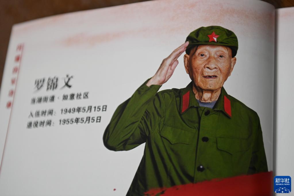在平湖市退役軍人事務(wù)局2020年制作致敬抗美援朝英雄的圖冊中,有羅錦文老人身穿軍裝的一張照片(3月2日攝)。新華社記者 黃宗治 攝