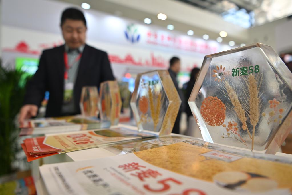 這是在展會(huì )上拍攝的小麥種子展示品。新華社記者 李然 攝