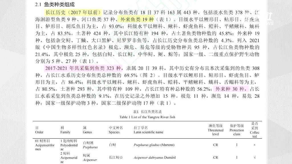 近年來(lái),長(cháng)江流域受外來(lái)物種入侵的潛在威脅加大。以農業(yè)農村部部署的第二輪“長(cháng)江漁業(yè)資源與環(huán)境調查”為例,2017至2021年,共采集到魚(yú)類(lèi)323種,其中外來(lái)種30種。而在2017年以前,長(cháng)江歷史記錄分布魚(yú)類(lèi)中,外來(lái)種為19種。