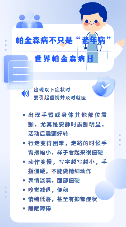 4月11日是世界帕金森病日。帕金森病是一種神經(jīng)系統變性疾病,在60歲以上老年人群中高發(fā),卻并不是老年人的“專(zhuān)屬”。