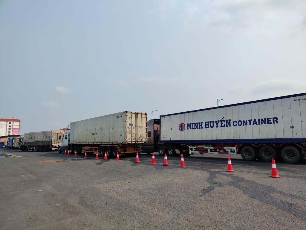 廣西防城港東興市邊民互市貿易區貨車(chē)在排隊接受出入境邊防檢查。新華社記者黃耀滕 攝