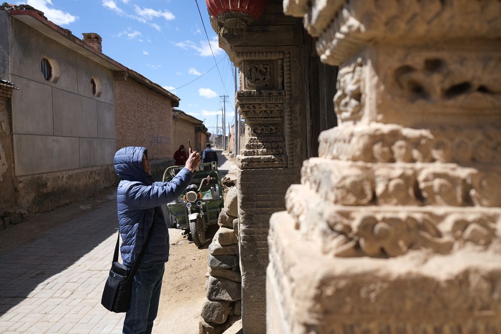 游客在山西省大同市天鎮縣新平堡古村落內游覽拍照(2023年4月7日攝)。新華社記者 唐詩(shī)凝 攝