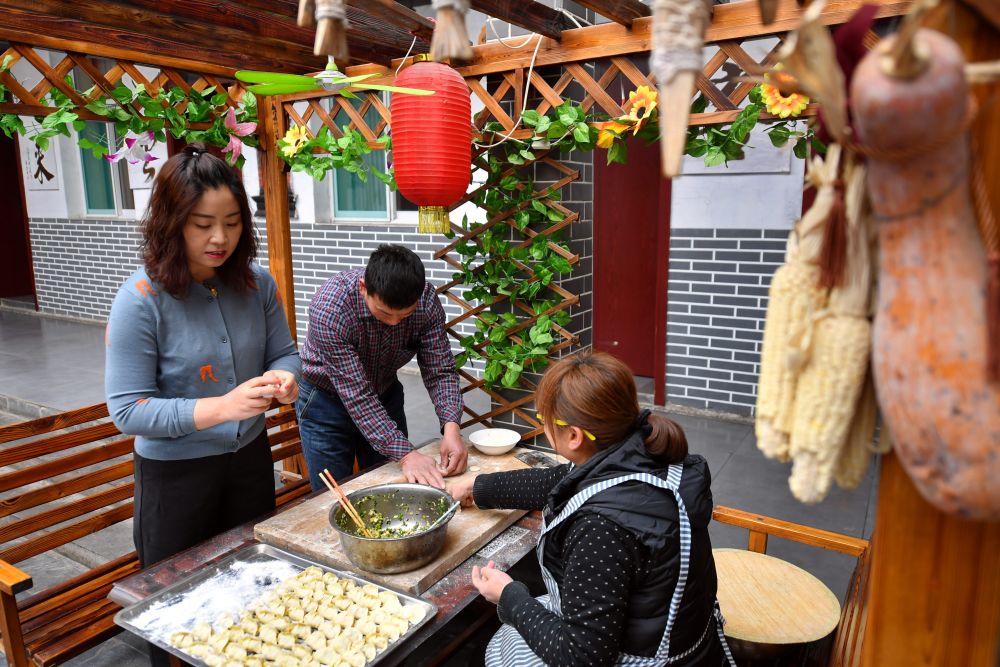 山西省平定縣娘子關(guān)村一家農家樂(lè )的工作人員為顧客包餃子(2019年2月26日攝)。新華社記者 曹陽(yáng) 攝
