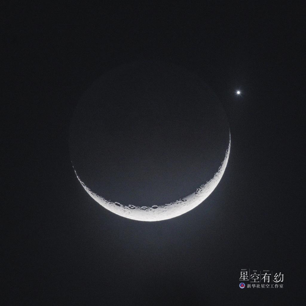 天津市天文攝影愛(ài)好者楊劍2023年3月24日在天津南開(kāi)拍攝的金星伴月。(本人供圖)