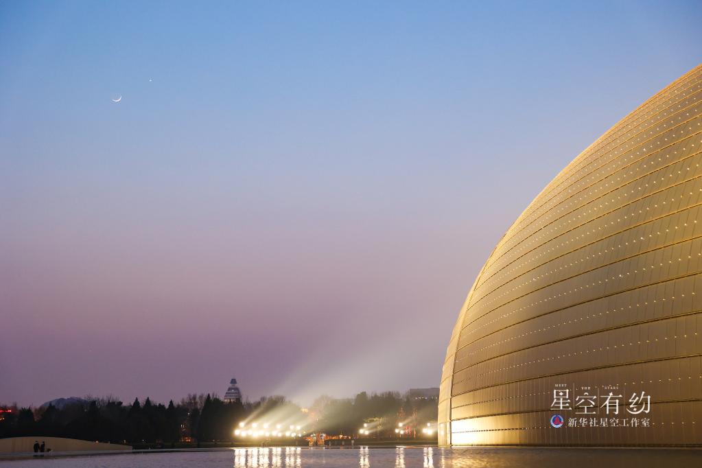 北京市天文攝影愛(ài)好者王俊峰2023年2月22日在北京西城拍攝的金星伴月。(本人供圖)