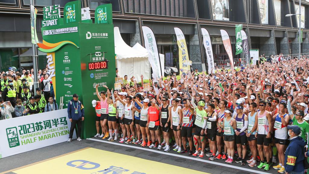 首次辦賽的2023上海蘇州河半程馬拉松賽鳴槍起跑