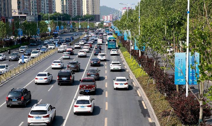4月27日,山東省濟南市經(jīng)十路公交車(chē)道平峰期允許社會(huì )車(chē)輛通行。(新華社記者王陽(yáng)攝)