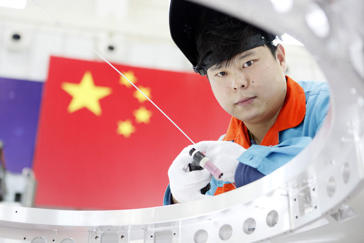 中國航天科技集團中國空間技術(shù)研究院529廠(chǎng)焊接成形制造中心高級技師鄭興在工作中(2018年1月26日攝)。新華社發(fā)(受訪(fǎng)者供圖)