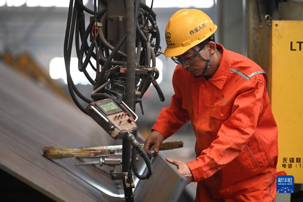 張明在中鐵山橋集團有限公司車(chē)間內工作(4月24日攝)。新華社記者 朱旭東 攝