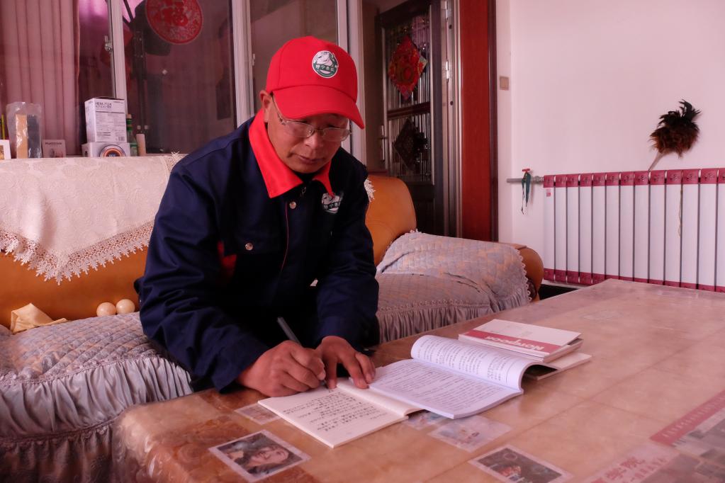 李隨省正在家中學(xué)習務(wù)果知識。新華社記者王紫軒 攝