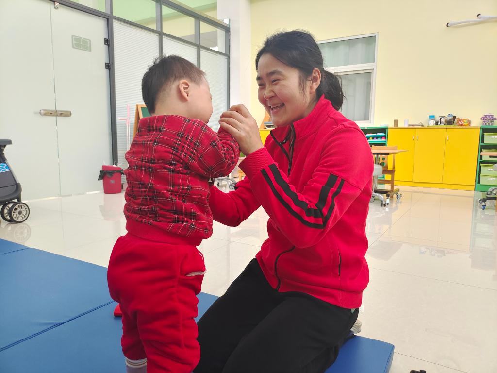 “芝妹妹真棒!”又到了小南芝的作業(yè)治療時(shí)間,寧夏兒童福利院兒童康復中心的康復治療師曹芳邊鼓勵、邊伸手接過(guò)歪歪扭扭倒向自己的小女孩,“母女”倆隨即笑作一團。
