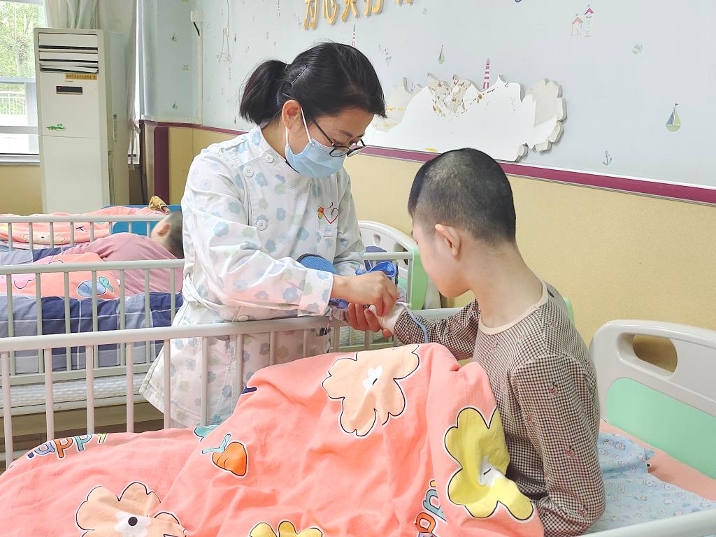 這群努力生活的孩子也同樣感染著(zhù)生活護理部主任萬(wàn)靜。記得剛工作時(shí),萬(wàn)靜曾在一個(gè)腦積水患兒床前手足無(wú)措地哭了一夜,而如今在一線(xiàn)護理崗已有20年的她,早已能從容熟練、科學(xué)精細地管護孩子們的生活起居,成為他們口中的“萬(wàn)靜媽媽”。