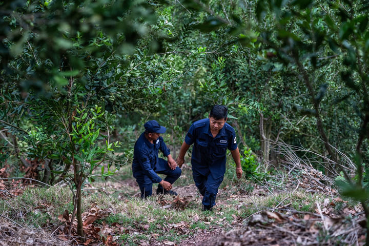彭金福和普永兵都是亞洲象監測員,負責監測大渡崗片區象群。他們通過(guò)路面監測、空中監測、熱成像監測等方式掌握象群蹤跡,為附近村民提供預警,并為科學(xué)研究提供監測數據。